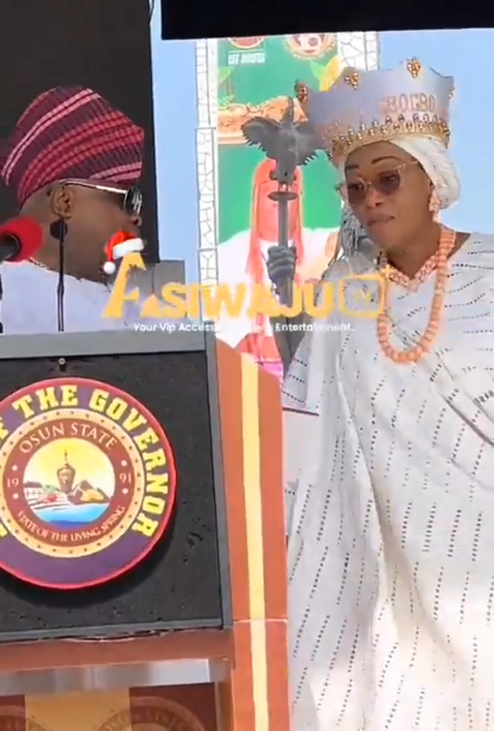 The incident happened on Sunday at the ceremony where the First Lady was installed as Yeye Asiwaju Gbogbo Ile Oodua. In a video that has since gone viral, Governor Adeleke, known for his love for music, was seen leading worship songs while addressing the audience.