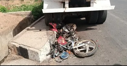 According to the eyewitness, who simply identified himself as Kunle, the speeding truck lost control and rammed into the motorcyclist.