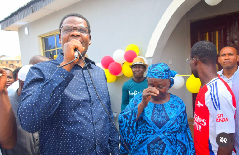 The presentation ceremony was attended by a large crowd, and Iya Niwe’s emotional response was met with cheers and applause. Hamzat, who is the CEO of Agidigbo FM, consoled the actress and officially unveiled the property by cutting a ribbon of balloons.