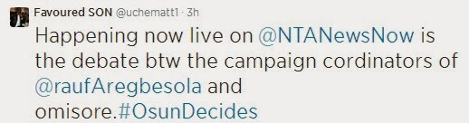 debate between him, the present Governor, Rauf Aregbesola and other candidates,