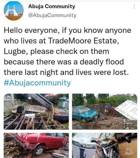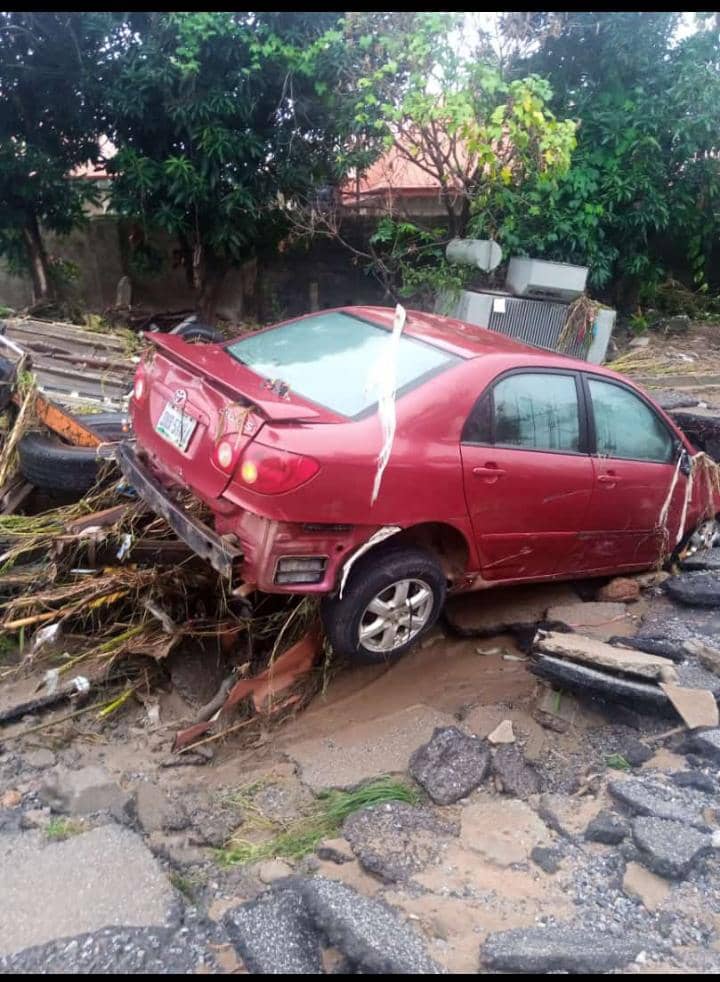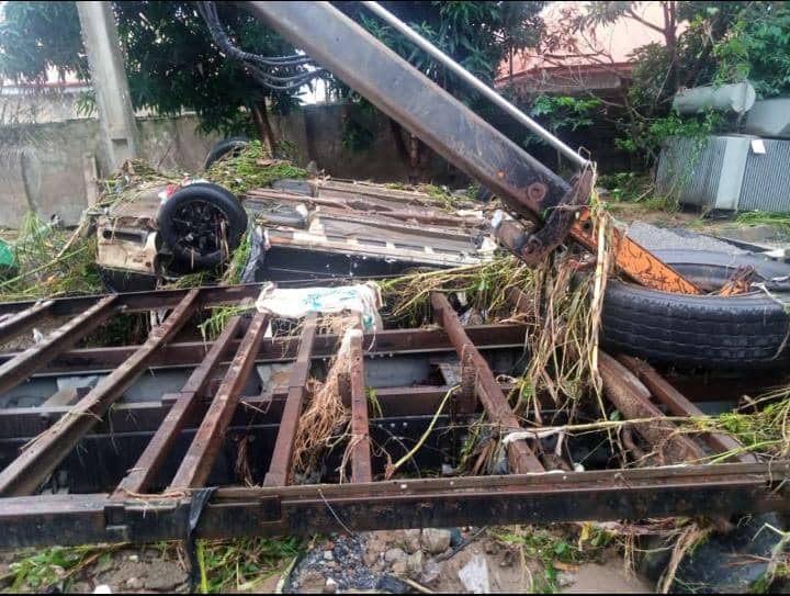Flood last night swept through Trademore Estate, Abuja destroying cars, and houses.