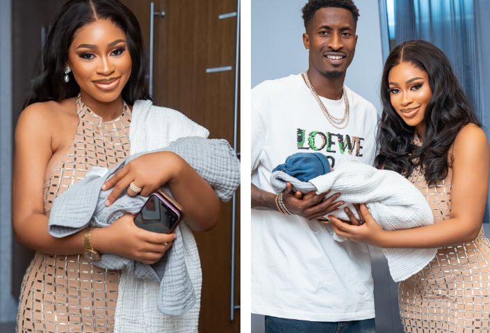 The actress and her footballer husband, Peter Olayinka recently celebrated the 8th-day of their son.