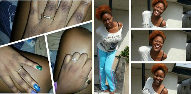 Kel is a Nigerian rapper. She posted the pic above on instagram showing off her ring and in the other one, she looks more than happy. Love indeed is a beautiful thing, enjoy.