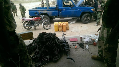 “The troops laid the ambush about 3 kilometres away from Goneri town, South West of Kukawa Local Government Area, where they encountered the unsuspecting terrorists in 2 gun trucks and on motorcycles and engaged them. An unconfirmed number of the terrorists escaped with gun shot wounds abandoning 1 Buffalo Land Cruiser gun truck mounted with an Anti-Aircraft gun, 1,600 rounds of 12.7mm Armour Piercing Incendiary (API) ammunitions, 563 rounds of 7.62mm (NATO) ammunition for General Purpose Machine Guns and 57 rounds of 7.62mm (Special) ammunition.