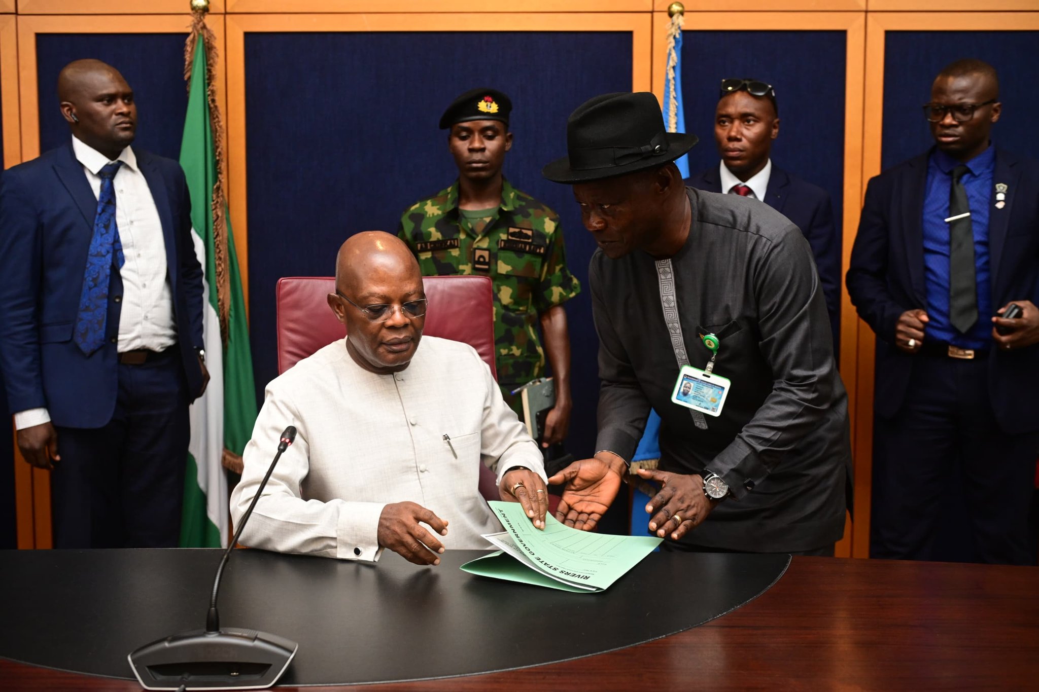 The sole administrator, accompanied by the state Commissioner of Police, Olugbenga Adepoju and the Assistant Inspector General of Police, Zone 16, immediately proceeded to Government House, Port Harcourt afterwards.