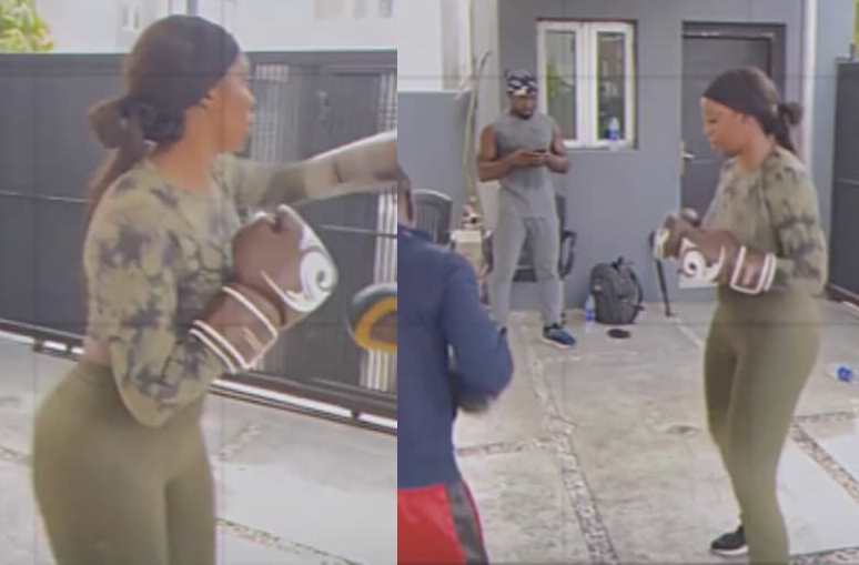The singer got a male sparing partner as she displayed the strength she is made of through her aggressiveness in throwing punches at her sparing partner.