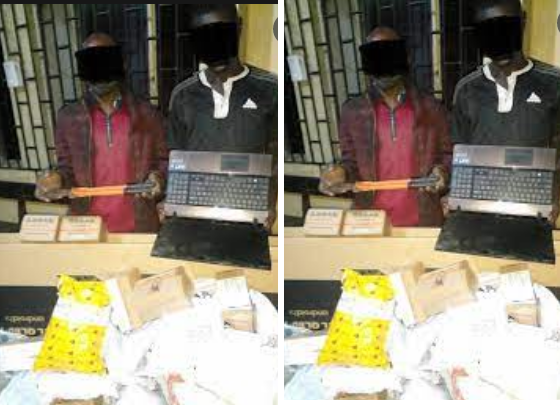 He noted that items recovered from the suspects included one Bajaj motorcycle, one new LG plasma TV, 66 various items ordered online from Jumia, one HP laptop, one bag of flour and one iron cutter.