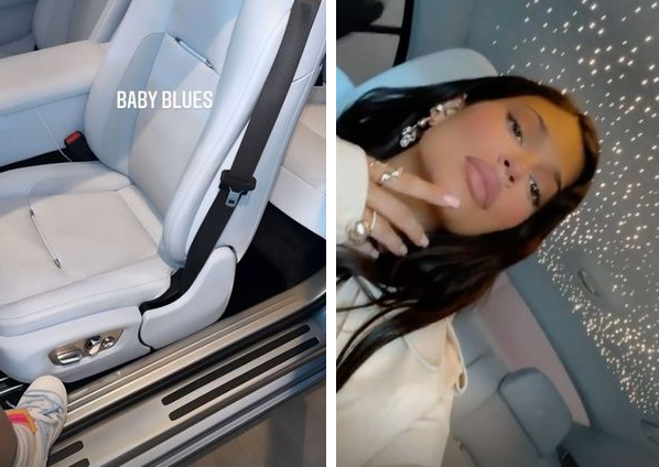 The 24-year-old shared a photo on her Instagram Stories on Wednesday, revealing the plush new light blue interior of one of her extensive fleet of expensive cars.