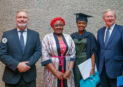 The First Lady of Nigeria, Mrs Aisha Buhari is in a happy mood. She was joined by friends and families as one of her daughters, Hanan graduated yesterday. Sharing photos on social media and thanking God, the First Lady wrote;