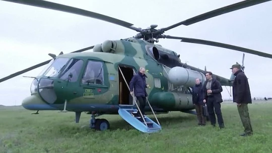 The Russian president purportedly flew into Kherson, one of four regions illegally annexed last year, by helicopter to attend a military command meeting.