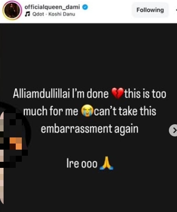 In a post on Instagram, she wrote, “Alhamdulilahi I’m done. This is too much for me. Can’t take this embarrassment again. Ire o.”