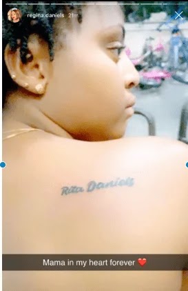 Unveiling the tat the expectant mom wrote; ”Mama in my heart forever”.