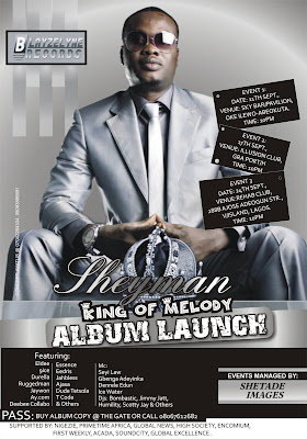 King of Melody, Sheyman is finally set for his Album launch in three major cities. Abeokuta on the 11th of September, PH on the 17th and 24th here in Lagos. And to say that some thieves went to bungle Sheyman’s house on Sunday is just rubbish. Ok[thieves] these guys are so jobless now and the only place they think they can go his now sheyman’s house abi? Has he turned into a politician?