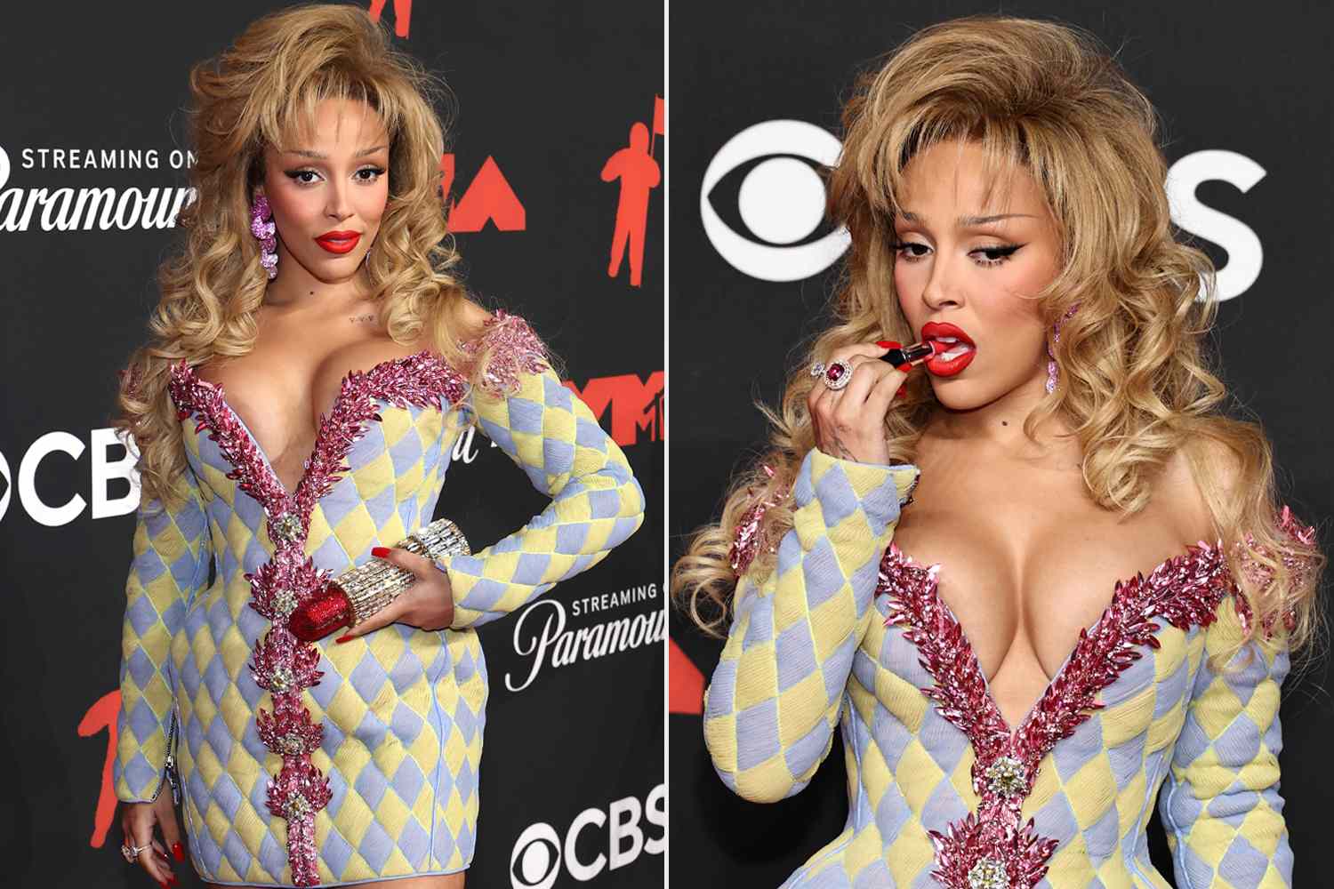 While playfully applying red lipstick to her plump pout, Doja stunned photographers when she suddenly took a bite out of the makeup product and began to eat it.