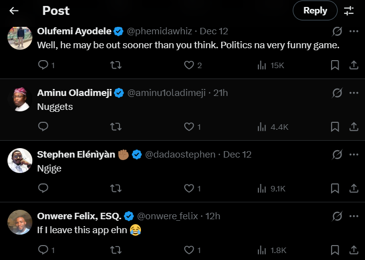 Oguntoye Opeyemi (@Equityoyo) asked his followers to guess who an ex-office holder who said he was once a Governor just like the sitting president, Bola Tinubu, and was also a Senator just like the president, but he is now in prison.