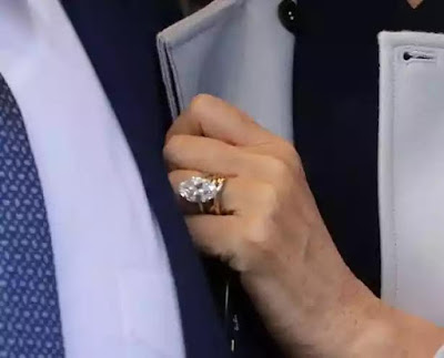 in Mayfair and she flashed her wedding band and £2.4million diamond engagement