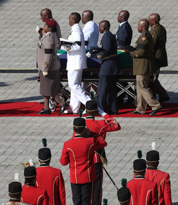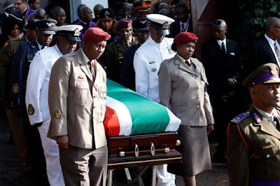 The emotionally charged official funeral began in Soweto, where she lived until her death on April 21, aged 81.
