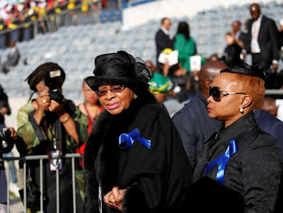 Thousands of mourners packed the 40,000-seat Orlando Stadium to bid farewell to the powerful figure who will be buried as a national hero, after lively debate over how she should be remembered.