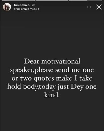 Lol. Nigerian singer, Timi Dakolo has penned a note to motivational speakers, saying he needs one or two quotes from them to hold body, as today just dey one kind, lol.