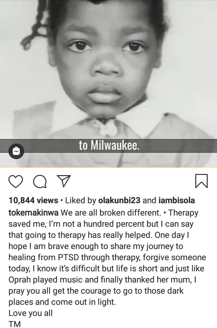 OAP Toke Makinwa revealed her struggle with Post-Traumatic Stress Disorder (PTSD) and how therapy helped her through.