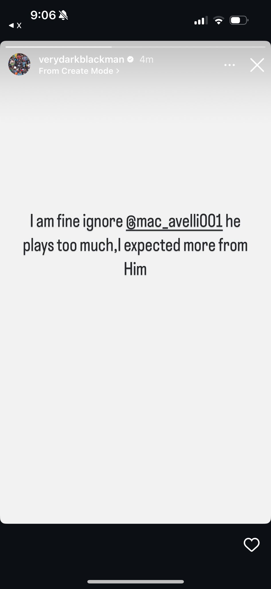 “I am fine. Ignore @mac_avelli001 — he plays too much. I expected more from him.”