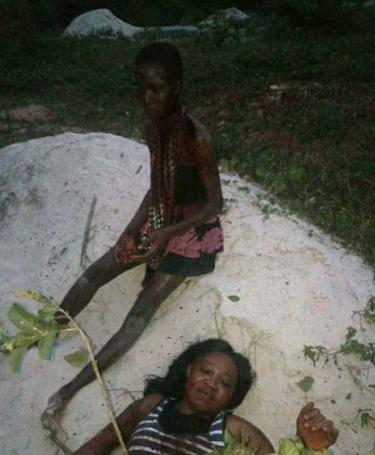 Pictures shared online show the young girl with blood all over her body and the supposed mother laying on the ground with blood stains.