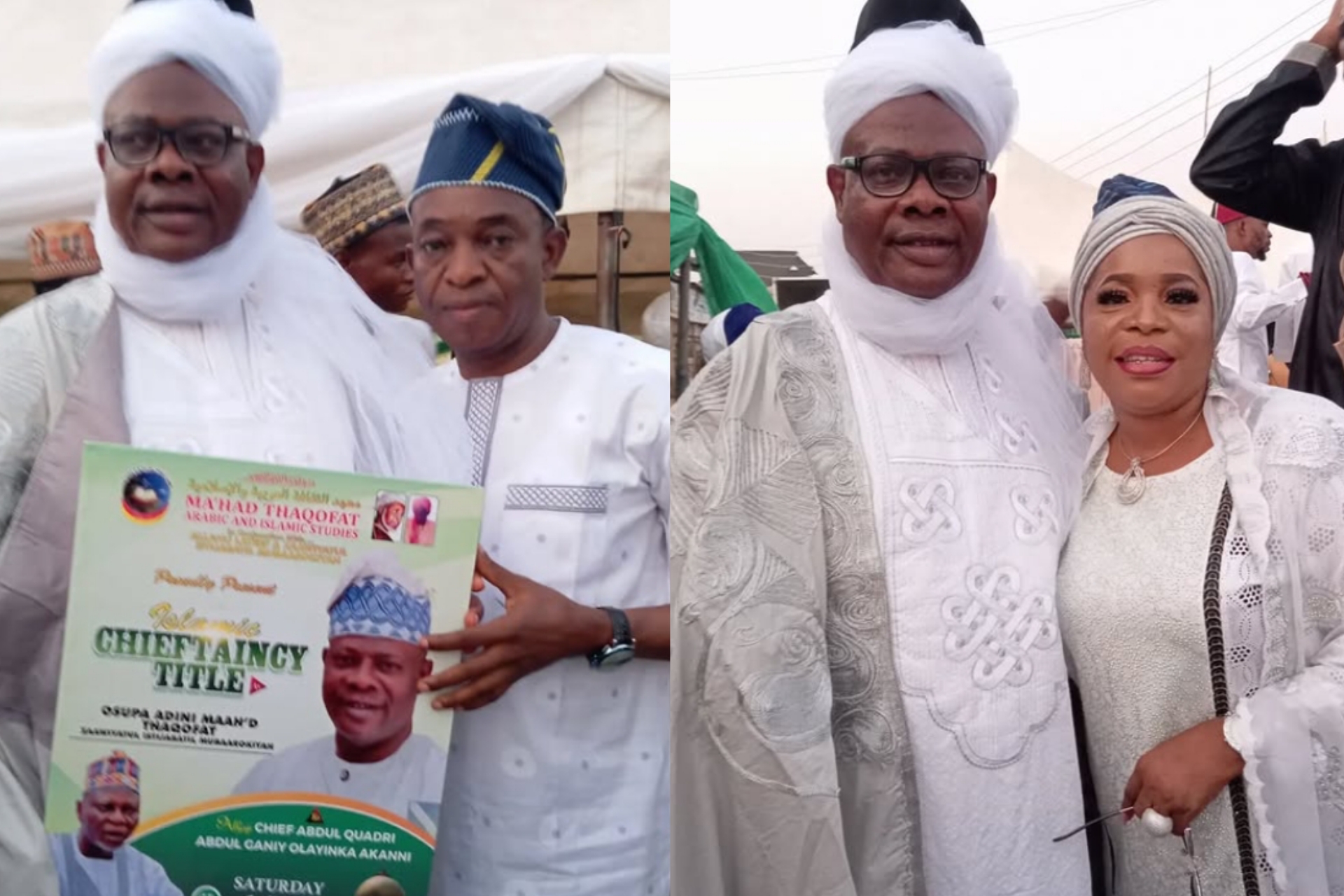 The Osupa Adini title is associated with Ma’had Thaqofat Arabic and Islamic Studies, and Quadri also acknowledged the support of his spiritual father, Fadeelat Sheikh Ahmad Hanafy.