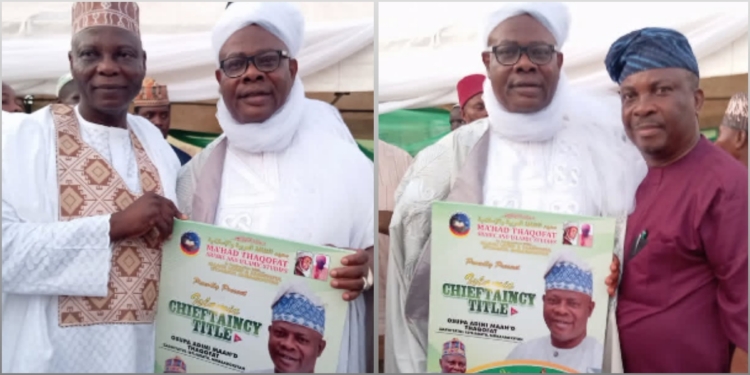Yinka Quadri received the honor under the headship of Chief Imam of Araromi Central Mosque, Fadeelat Sheikh Ibrahim Omodola.