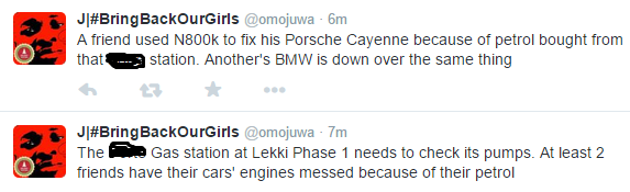 bad petrol at one of the Lekki gas stations which almost messed up the car engine.