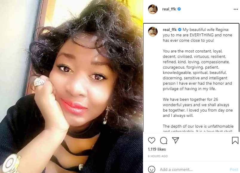 Former Aviation Minister has taken to Instagram to shower praises on his first wife, Regina.