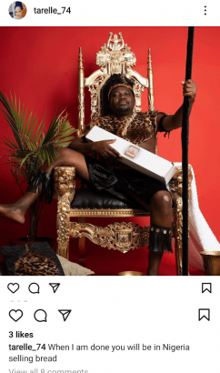 She concluded saying, by the time she is done with him he will be back in Nigeria selling bread.